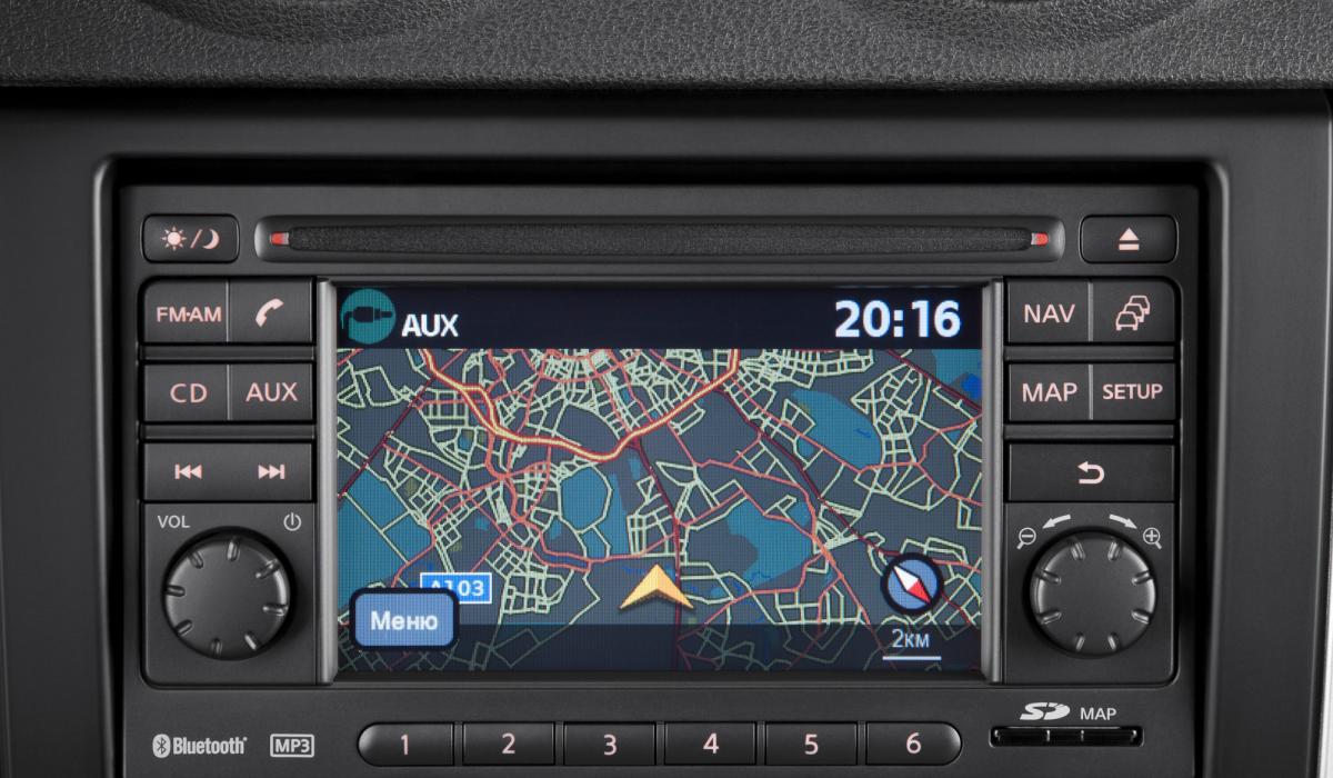 - NissanConnect®: 5" цветной сенсорный дисплей, CD / MP3 / FM / AM магнитола с поддержкой Bluetooth® Hands-free, линейный аудиовход AUX, вход для подключения USB-устройств и iPod / iPhone, 4 динамика