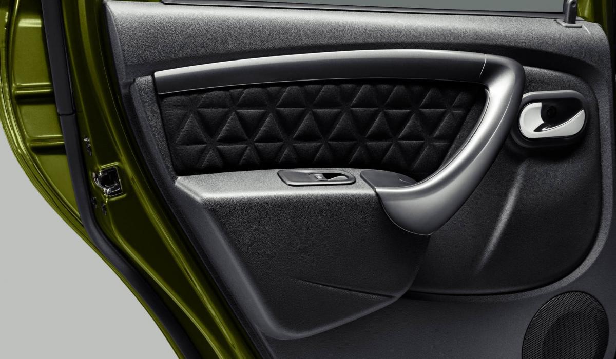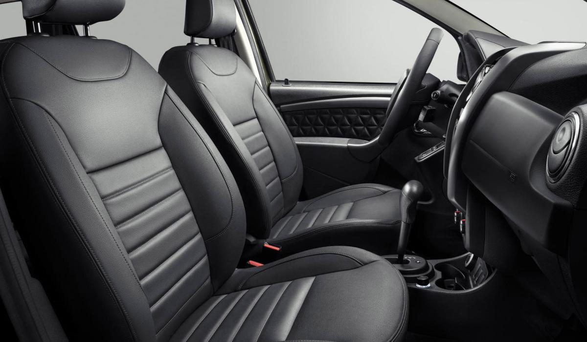 - Тканевая обивка с отличительной строчкой и надписью DUSTER
